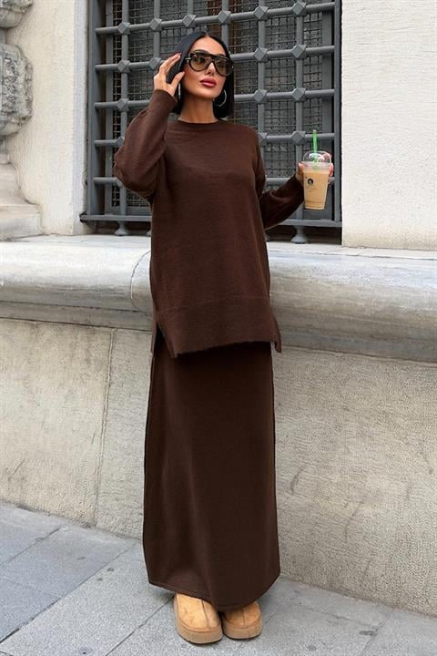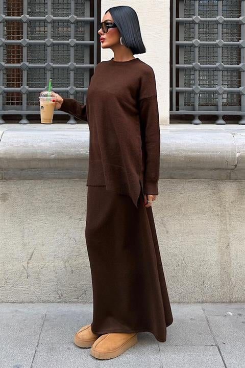 Mit diesem Zweiteiler bist du bereit für den Herbst! Elegant und schick in Braun gehalten, ist er ein absolutes Must-Have.